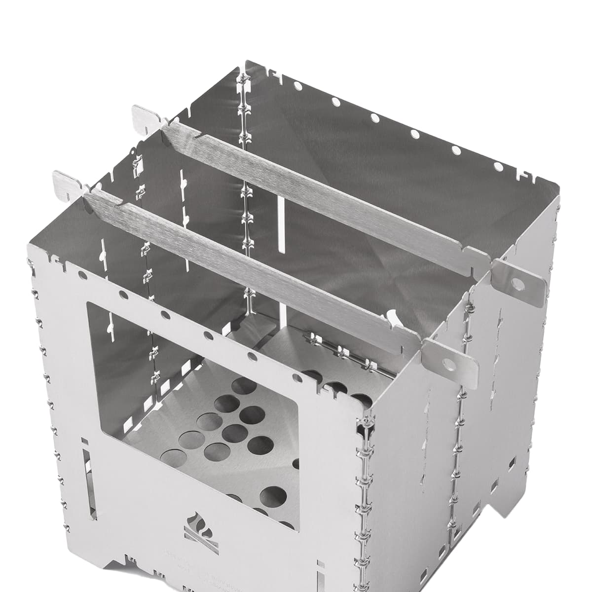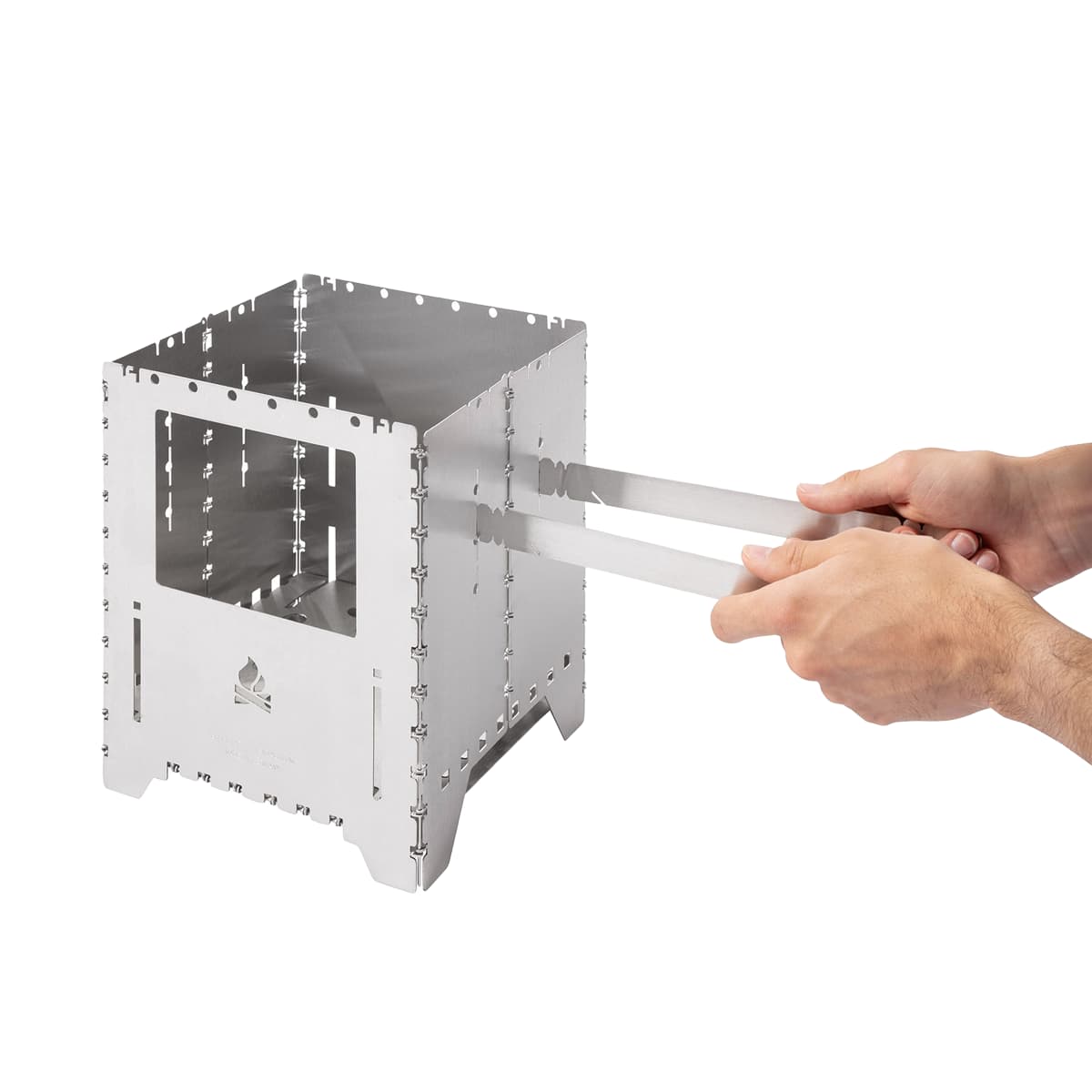 The largest stove of the Bushbox family, this 100 % stainless steel folding stick stove is perfect for longer trips, or for cooking for several people with larger cookware or billy pots, and can also operate as a portable firepit/campfire.