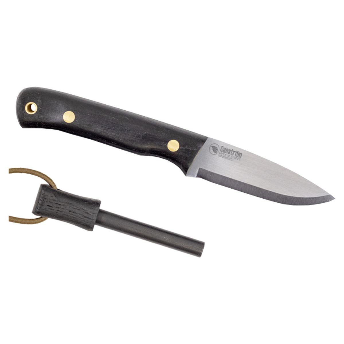 Designed by UK knifemaker Roger Harrington, the Casström Woodsman knife is a tough, robust, classic bushcraft and general outdoors full tang knife. With a 3.5" (89mm) Scandinavian ground blade of Uddeholm Sleipner carbon tool steel, the blade is well suited to fine wood work, and allows for the user's thumb to provide extra control near the blade tip. Casström's cryo quenching process during hardening provides extra rigidity and strength when tackling tasks that involve impact (such as battoning).