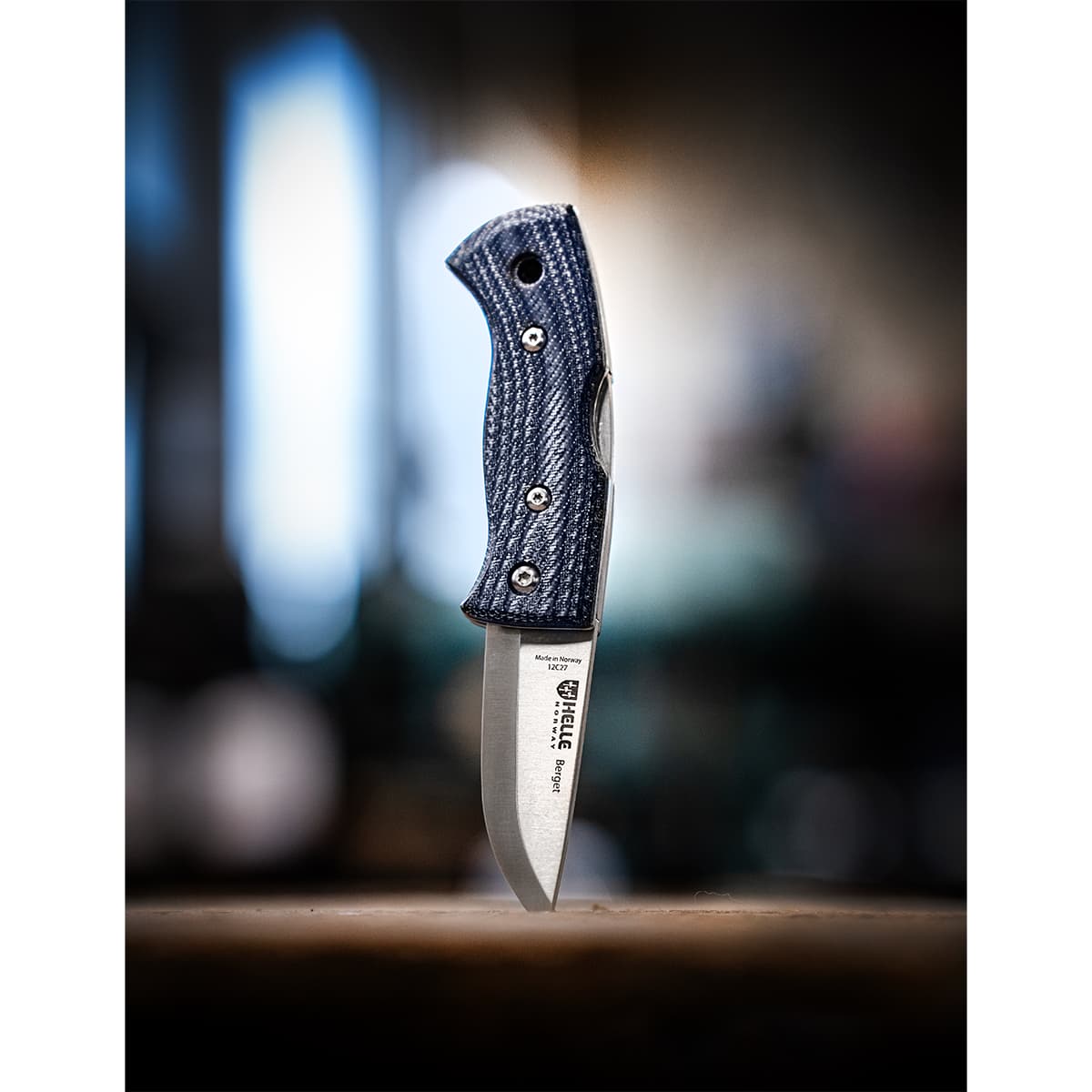The Helle Berget is a small, compact, easily stowable, weatherproof pocket folding knife, that is Helle's first standard model with a micarta handle. It's sturdy lock back construction and scandi-grind makes it the perfect outdoor EDC (Every Day Carry) knife, and it's 55 mm long, 2.7mm thick blade in 12C27 steel has a traditional drop-point blade and a nail nick for ease of opening, and performs like a fixed blade when in a locked position.