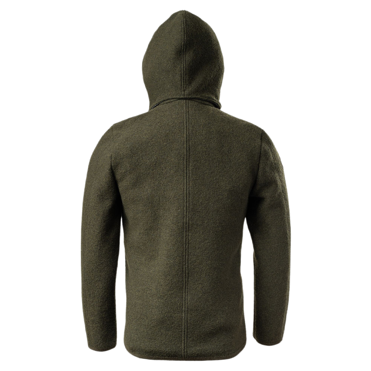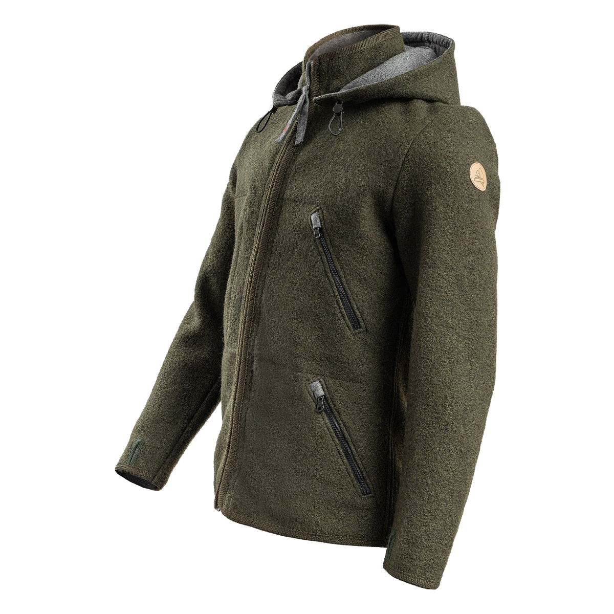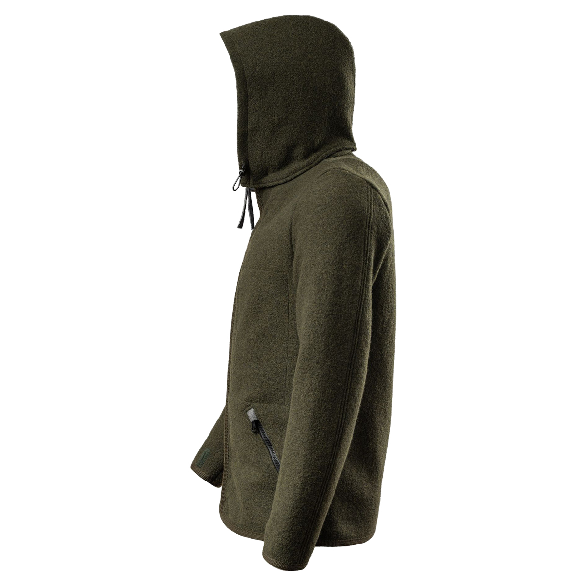 Sporting a high collar, removable hood, 3 exterior zippered pockets, one interior pocket, and thumbholes on the sleeves, the Wool Essentials Active Wear Jacket is designed for real world, active use in all sorts of conditions, and is naturally fire retardant . The outside of the jacket is made from high-quality boiled wool, which is naturally water-repellent thanks to the lanolin content, and is silent when being worn (great for hunters). Even when wet, it retains up to 80 % of its warmth – ideal for staying protected in cold, damp conditions.